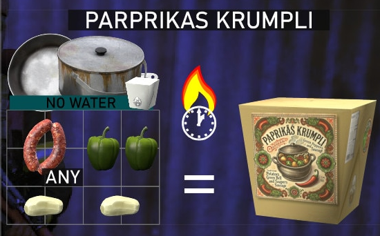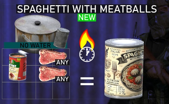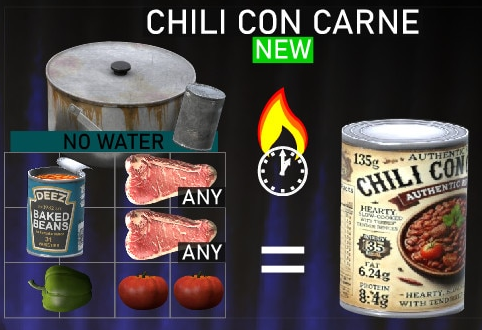 CookZ gives players the ability to prepare meals by combining items you find and/or harvest into canned goods for long term storage. While this mod has a large selection of recipies available; I’ve only posted the ones you will be able to prepare here as Black Winter doesn’t have fruit or mushroom drops.